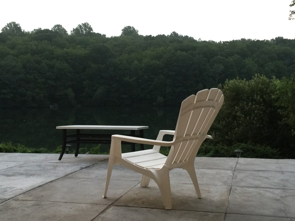 When it is not storming here it is incredibly pleasant and peaceful, though even the hours-long downpours can be lulling. Sometimes there is a cooling breeze when we sit on the deck, being entertained naturally by the sights and sounds of life around us. We often see kids off from school for summer, fishing on the few large rocks on the uninhabited opposite side of the lake. Sometimes neighbors in row boats, paddle boats or standup paddle boats float by. We also have seen a flock of 16 geese – or at times just 15 and just 1, and other waterfowl swim or fly low over the lake. As I write I must have seen 5 chipmunks – or the same one 5 times? – dart across the deck as if to say, “What about me? You forgot to mention me!” This prompted me to recall too that we had also seen some deer in the neighborhood in the evenings, as well as chipmunks.