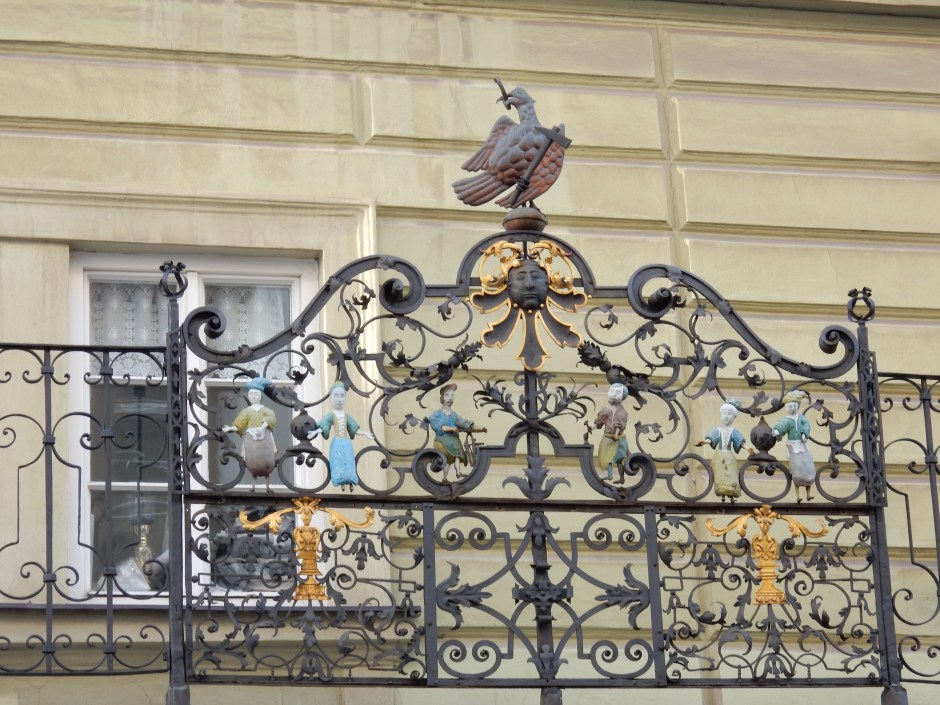 That afternoon we went to see the movie, Anthropoid, suggested to us by our European UU friends, at a theater that showed it in English with Czech subtitles. While it was a difficult show to watch, it was well worth it for the history it portrays, that took place right in Prague. On a lighter note, this movie house has some entertaining seat covers, and, the building houses unique art by a current Czech – that hanging statue is of Good King Wenceslas on his horse, hanging upside down. Later we walked around town and saw the “Dancing Building” as well. Fun!