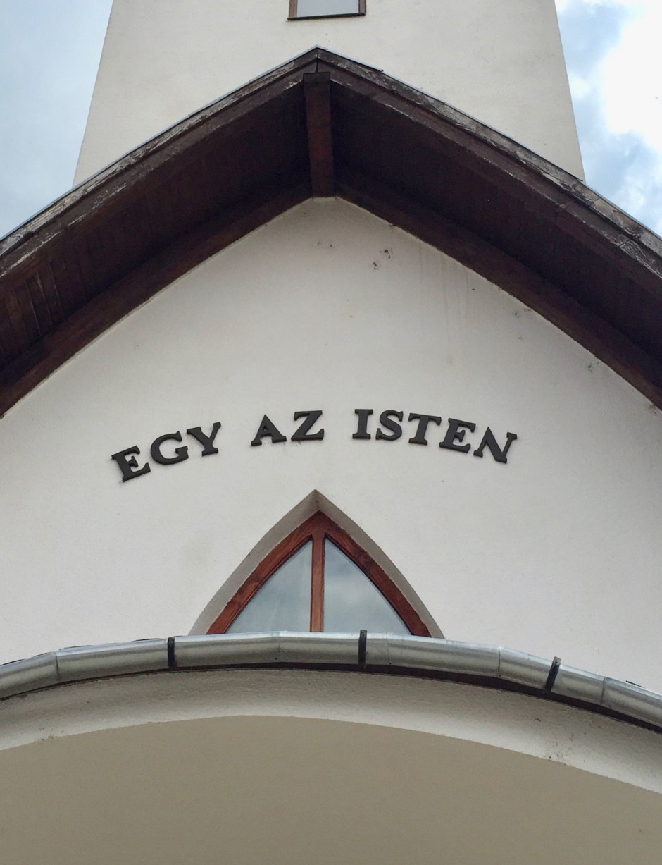 Kolozsvar 1 is one of three Unitarian congregations in the city of Kolozsvar. This one is near our AirBnB, in the same block on the same street as the Unitarian Headquarters building, and, the Unitarian schools – both the seminary and the primary-through-high-school, school. We felt fortunate that the current intern at Kolozsvar 1 was able to sit with us during the service and to translate the concepts of the sermon, as had been done for us in Arkos and in Medias by each minister’s wife. As you might notice from the sign on the door which is as historic as the whole area I might add, how different the Hungarian language is. I can make out words, what I believe might say “Worship 11am” and possibly “Preaching Today:” and the minister’s name, but with little to no certainty.